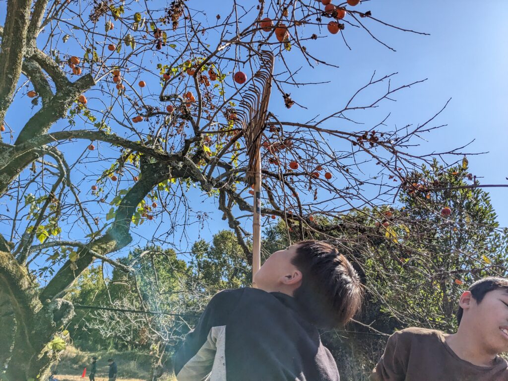 11月農園の柿を採って食べる
