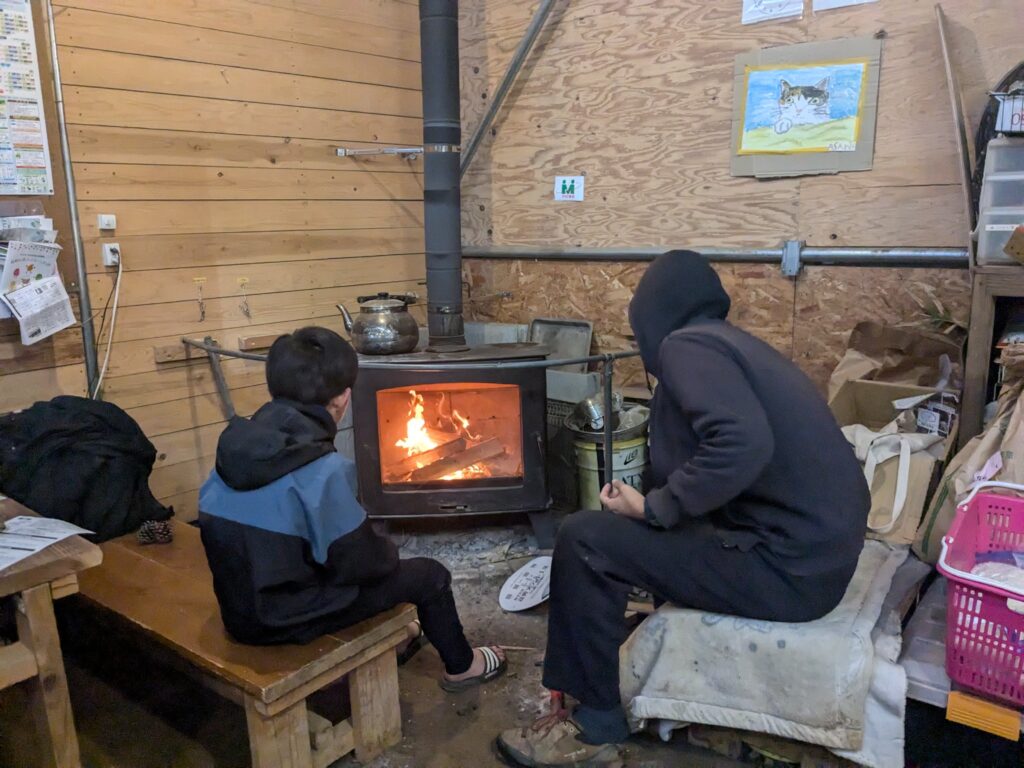 冬は薪ストーブでのんびりと